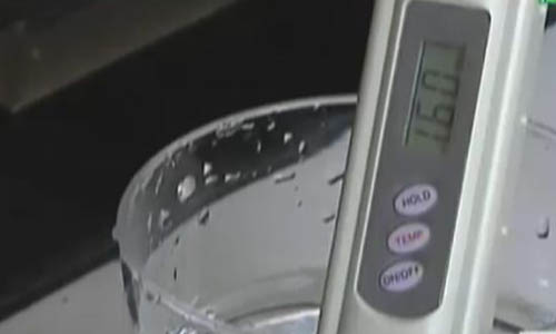 旭哥带着他买的这支TDS水质测试笔,来到了青岛市供水水质监测中心,请教一下这儿的工程师。跟旭哥一样,王主任找来一个干净的烧杯,用自来水涮了几遍,又接了一定量的自来水。将两支TDS笔放入水中,数值立马就出来了。