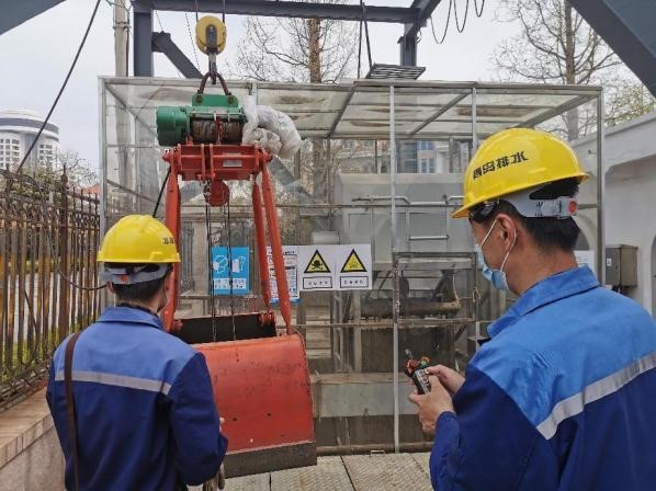 开展泵站集中清池拿砂工作,结合疫情防控工作要求,合理研究制定清池方案,严格落实疫情防控消杀,聚焦科技赋能,取消人工下井清池作业,充分利用抓斗车、吸污车、移动砂泵、机械抓斗等机械设备,有效避免了人员进行有限空间作业带来的安全风险,提高了泵站清池效率。截至目前,已完成沧台路泵站、杭州支路泵站等9座泵站的清池拿砂工作,有效保障泵站设施良好运行。